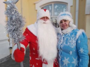 Самым ожидаемым событием стало карнавальное шествие новогодних персонажей. А пока его ждали, никто не скучал. В праздничной палатке библиотекарей — горячий кофе с бутербродами, лотерея, игры и даже пресса разных лет. На стеллаже, кстати, новогодние выпуски «Добрушскага краю». Работники районного Читать