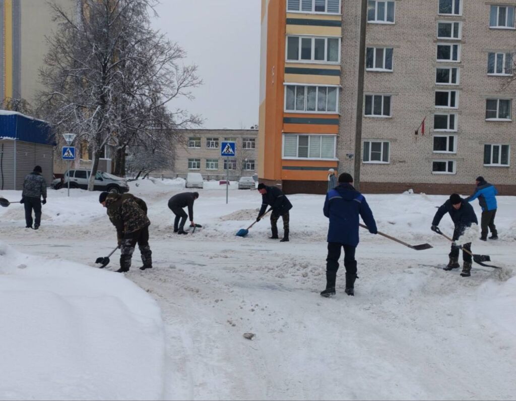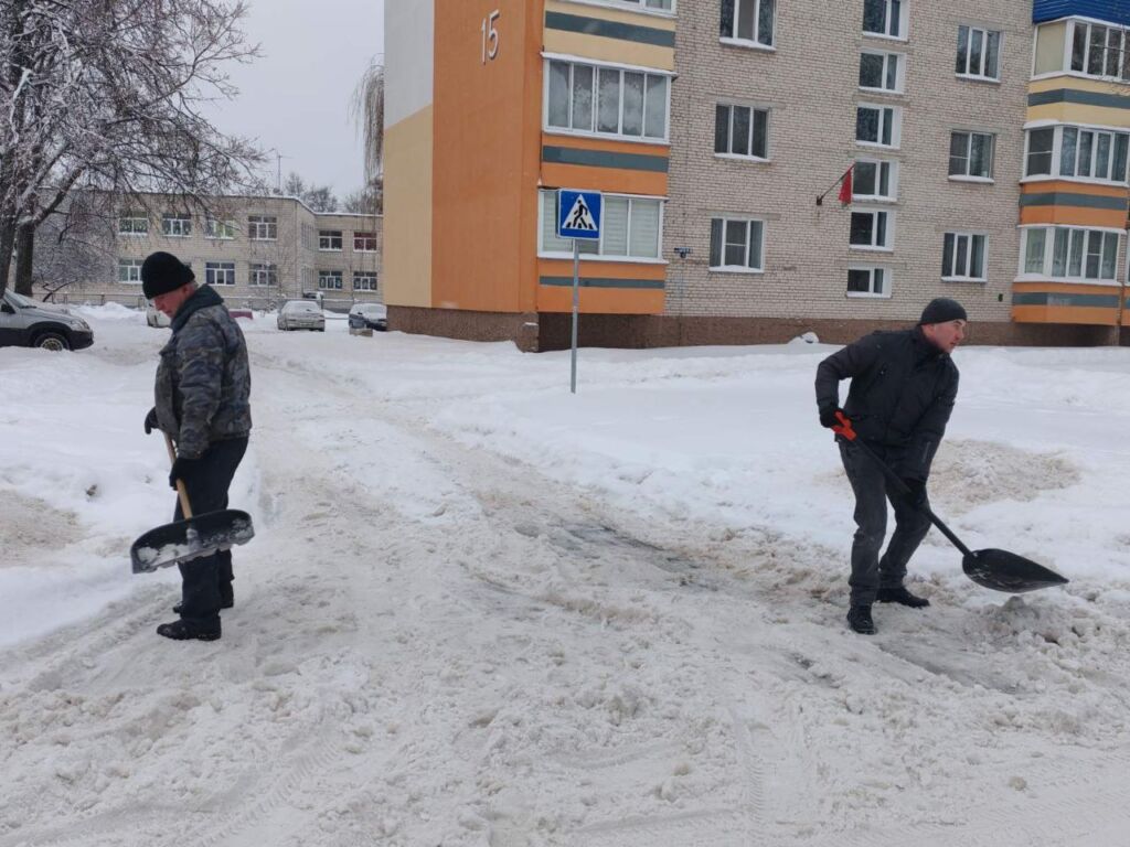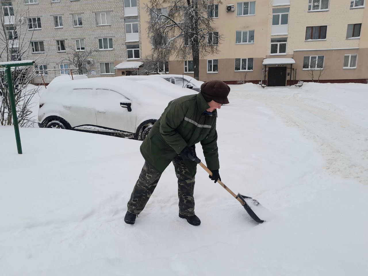 Участники районного субботника оперативно убрали снег возле всех 11 подъездов и занялись расчисткой дороги на повороте к дому.