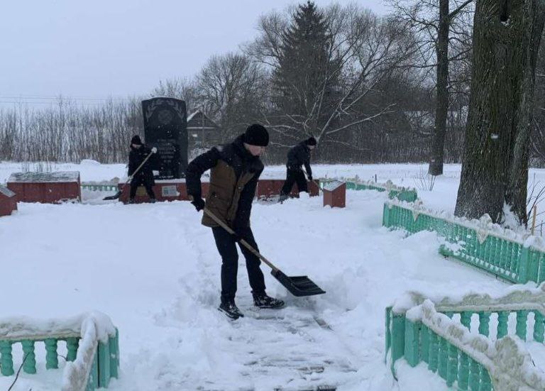 Активно включились в борьбу со снежными заносами и волонтеры школ района. Отрядами ребята расчищают местные памятники, а также оказывают помощь односельчанам серебряного возраста. В особенности тем, кто живет один.
