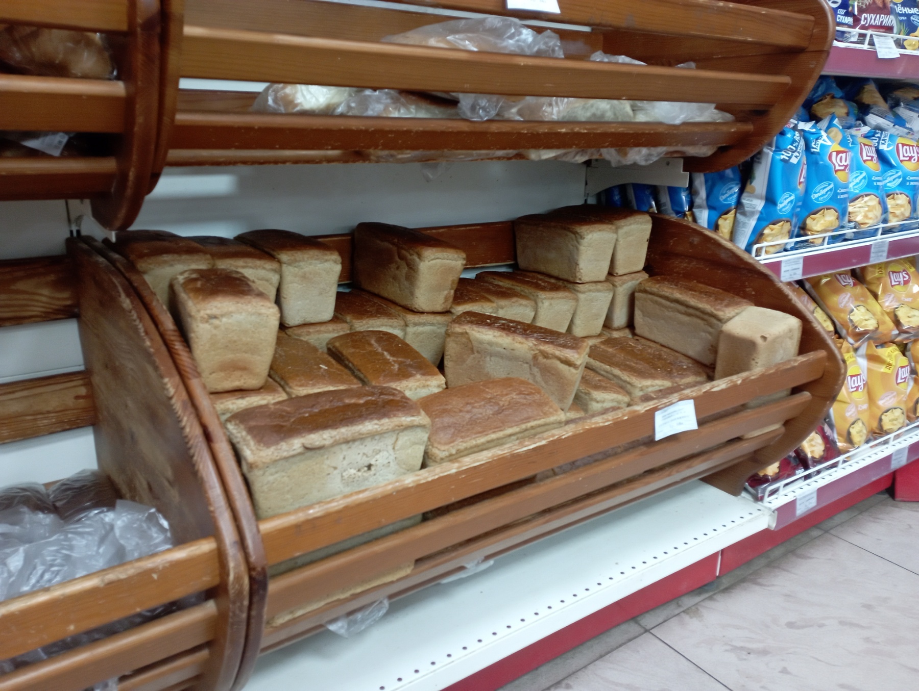 Теплым хлебом с хрустящей корочкой нас встретил магазин «Продуктовый дворик». Оказалось, в тот день как раз была поставка продукции от Добрушского хлебозавода.