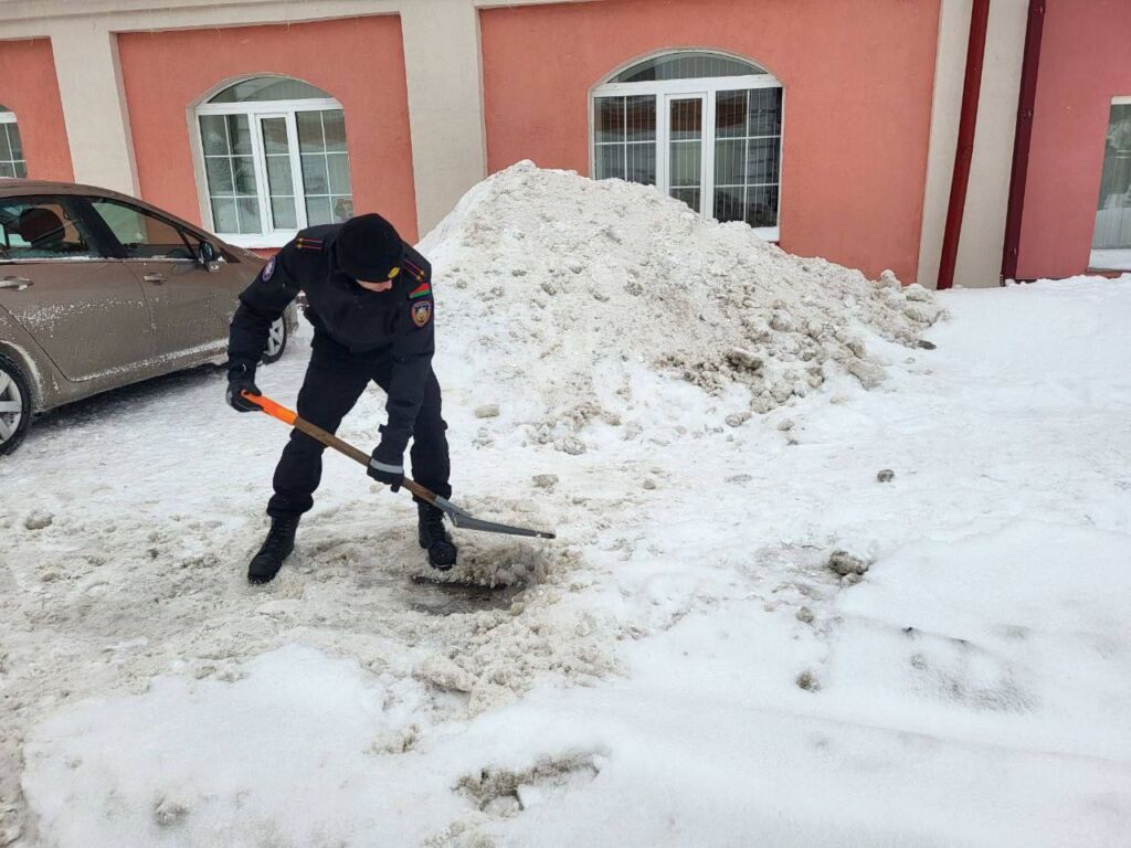 Работники районного отдела по чрезвычайным ситуациям и районной организации ОСВОД убрали снег и на своих, и на городских территориях, очистили от льда парковку.