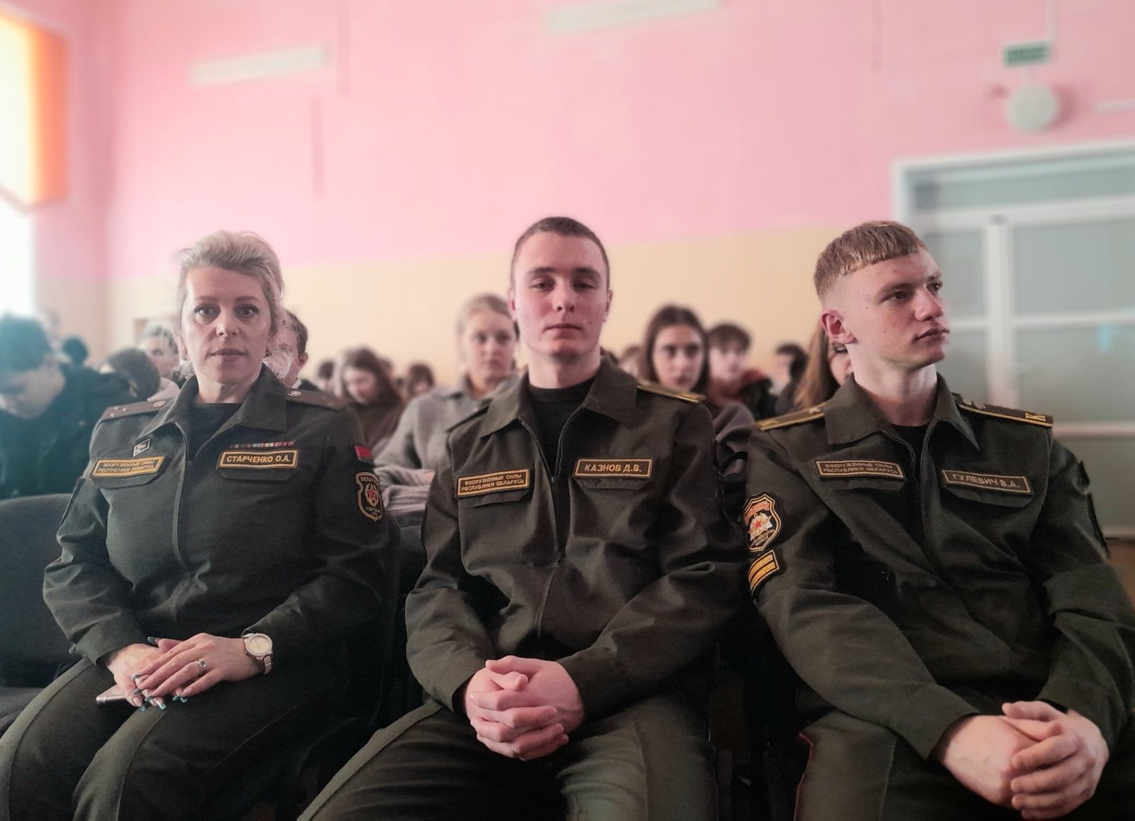 На встречу с курсантами нескольких белорусских вузов, которые готовят кадры для Министерства обороны, пограничных и внутренних войск, сегодня пригласили старшеклассников школ города и гимназии, а также учащихся колледжа. Мероприятие собрало участников в актовом зале СШ №1 Добруша.