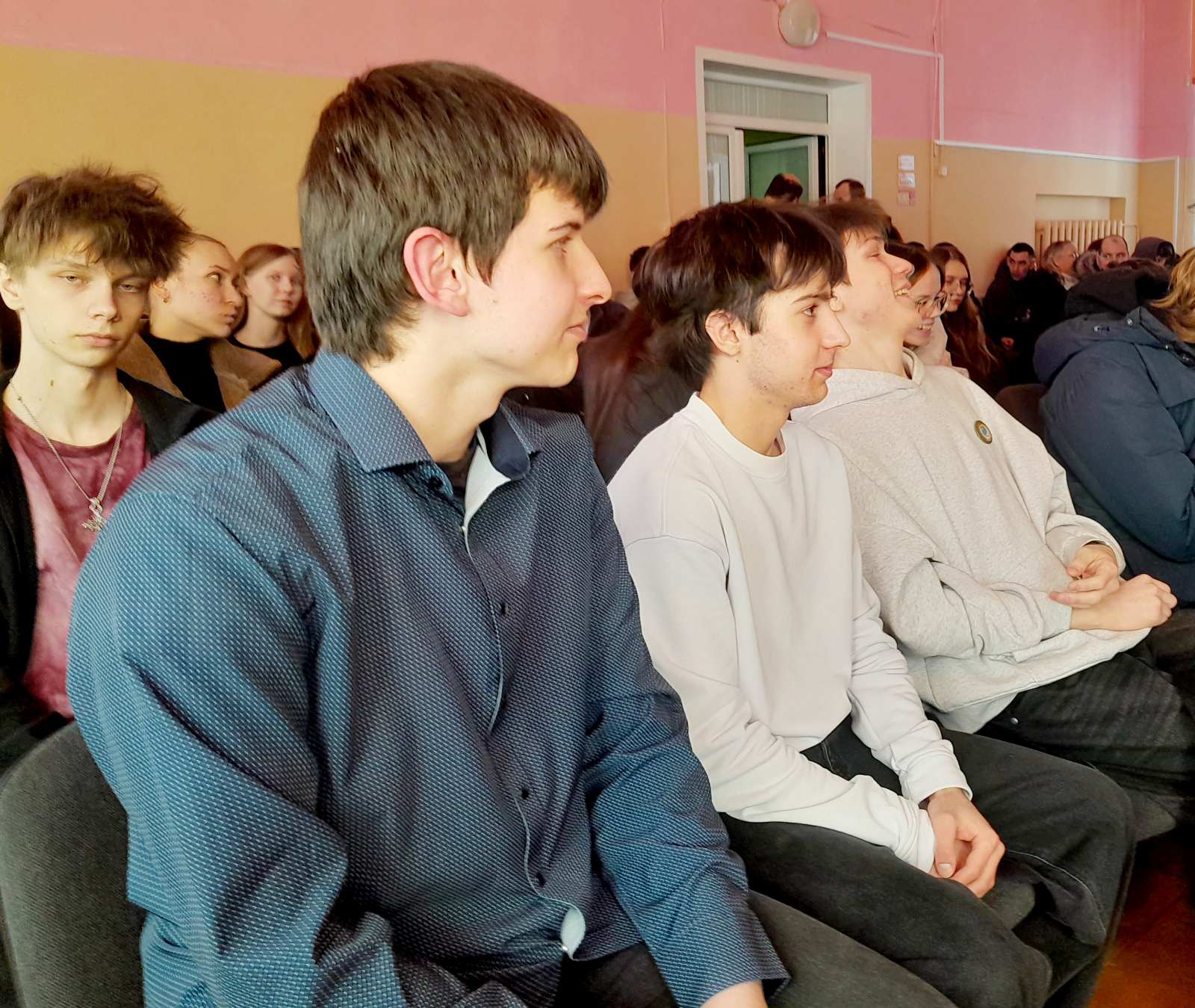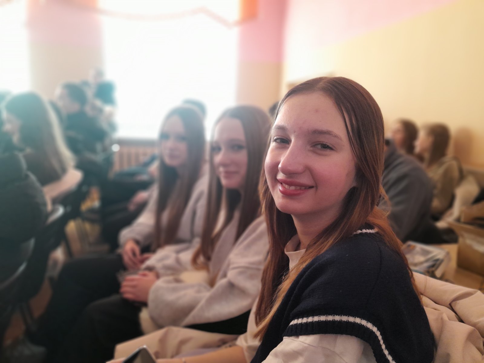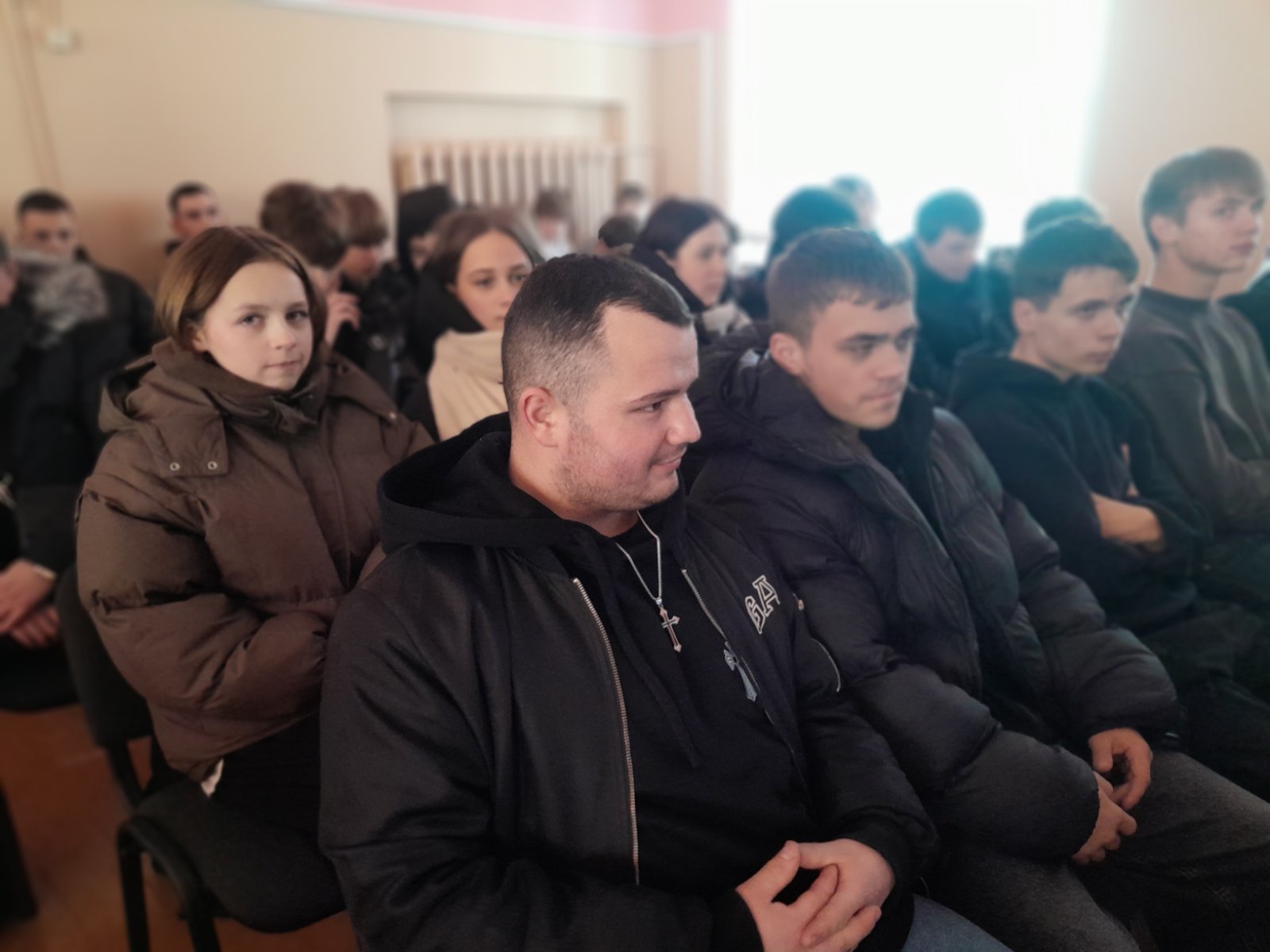 Высокая статная девушка в военной форме с погонами и медалями сразу оказалась в центре внимания. Старшеклассницы подходили, спрашивали, легко ли поступить в академию, насколько трудно учиться, и посильны ли физические нагрузки.