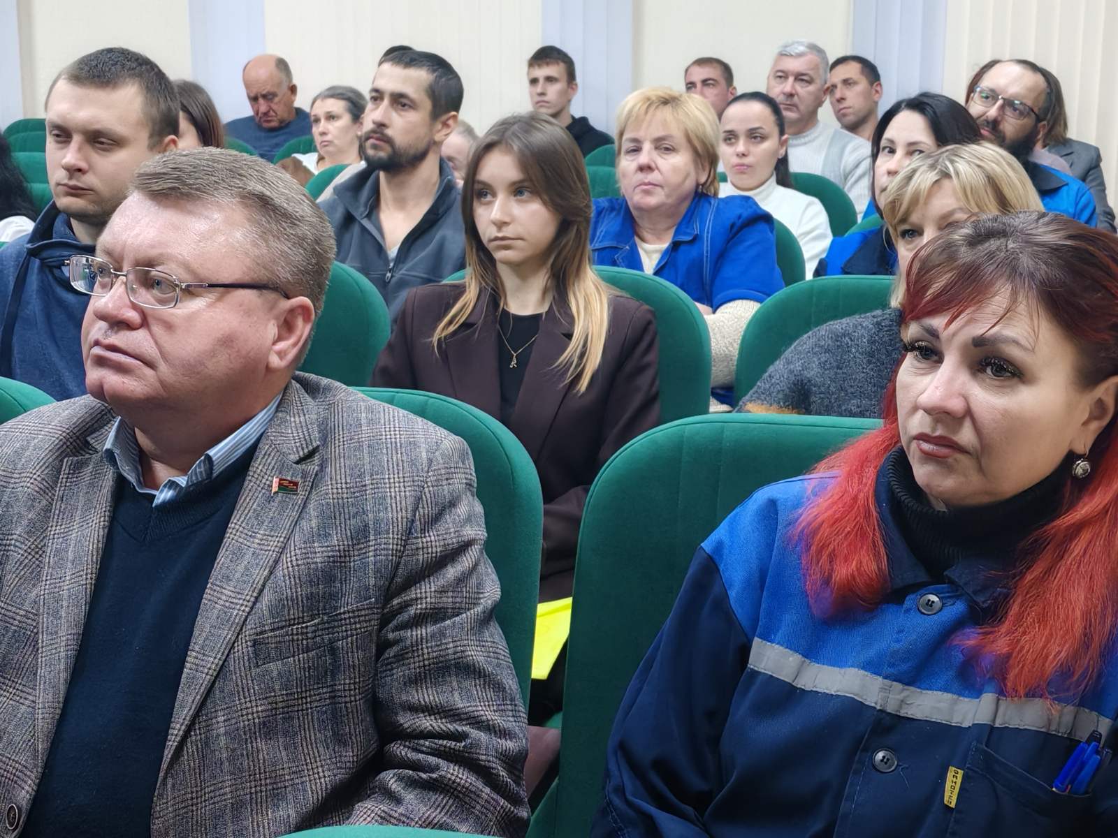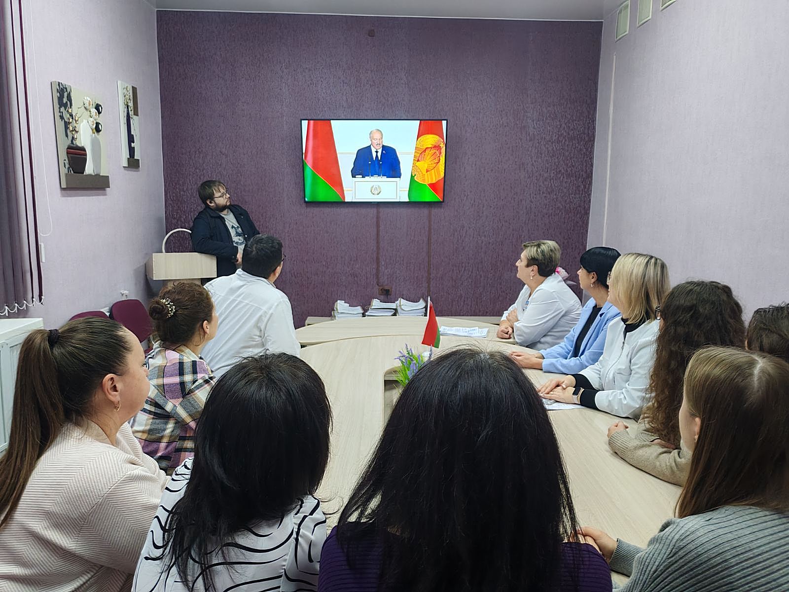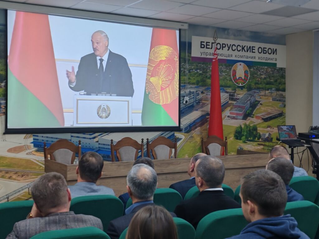 Рабочий день закончился, но представители многих предприятий и организаций не спешат домой. На бумажной фабрике после смены рабочие собрались в конференц-зале, где Послание транслировалось на большом экране.