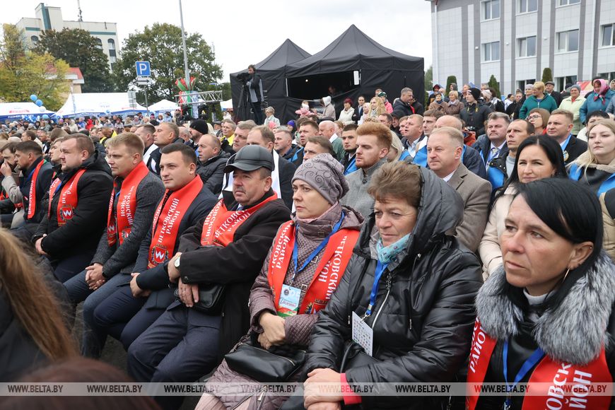 «Сегодня мы чествуем человека труда — того, кто из зерна создает хлеб, а из заботы о земле — будущее Гомельщины. Наша искренняя благодарность комбайнерам, водителям, операторам зерносушильных комплексов, всем труженикам полей и мелькомбинатов. Всем, кто участвовал в уборочной страде. Пусть ваша энергия, мастерство и преданность делу ведут нас к новым рекордам, к новым урожаям и к процветанию нашей родной Гомельской области и любимой Беларуси», — пожелал Иван Крупко.