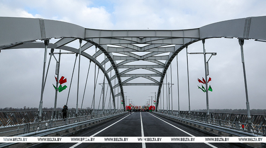 Президент Беларуси Александр Лукашенко 6 ноября открыл в Мозыре обновленный мост через реку Припять, передает корреспондент БЕЛТА.