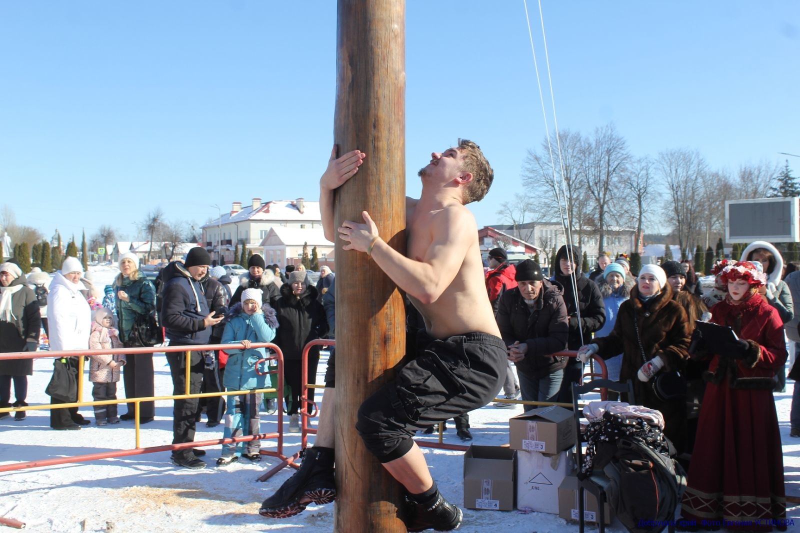 Игорь Костров — в числе тех, кому удалось достичь заветной цели. В беседе с журналистом «ДК» парень рассказал, что он учится в университете, любит спорт, регулярно тренируется. Но взобраться на столб оказалось нелегко — он очень скользкий. Немного не повезло в этот раз постоянному участнику аттракциона Владисаву Алесичу. Работник бумажной фабрики тоже дружит со спортом и не раз покорял подобную высоту, но сегодня что-то пошло не так. Тем не менее он не расстроился, а горячая поддержка болельщиков стала наградой за старания.