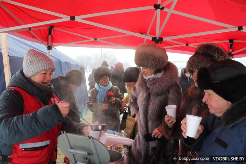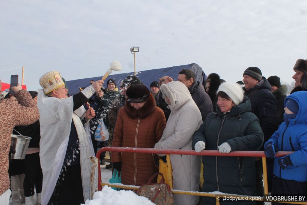 – А мы всей семьей сегодня тут! – улыбается добрушанка Татьяна Дорошкевич. – Обычно мой муж всегда окунается, а этот раз будний день, он на работе. Сама холода боюсь, поэтому не спущусь в прорубь. Тем не менее взяла дочку, зятя, сестру – и сюда. Но службу никогда не пропущу.