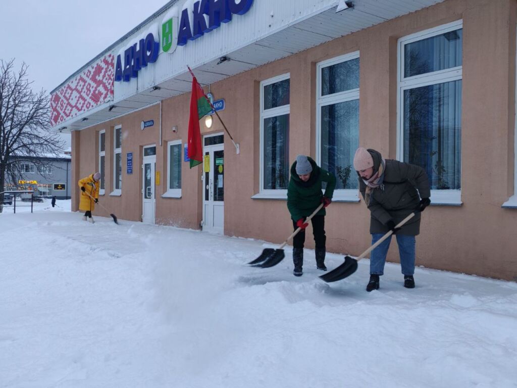 В центре Добруша сейчас жарко. Здесь развернулись самые массовые работы по уборке снега.