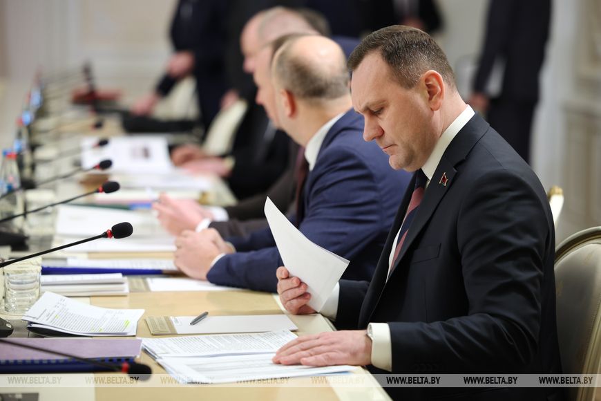 Президент Беларуси Александр Лукашенко собрал совещание с руководством Совета Министров, передает корреспондент БЕЛТА. На повестку вынесены такие вопросы, как урегулирование неплатежеспособности организаций и работа антикризисных управляющих, а также дополнительные меры по защите работников от невыплаты заработка.