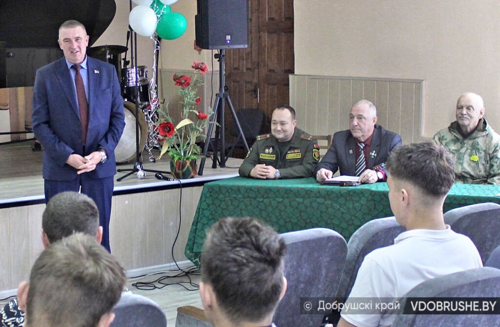Наказы и слова поддержки ребятам высказали военный комиссар Добрушского и Ветковского района Антон Лаврентьев, начальник отдела идеологической работы и по делам молодежи райисполкома Станислав Горшунов, председатель райсовета ветеранов Александр Старотиторов и представитель союза десантников Николай Пелипенко.