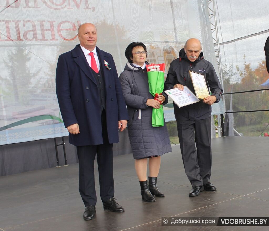 Земляки горячо приветствовали и юбиляров семейной жизни. На сцену пригласили супружеские пары, отметившие золотую свадьбу. Это Вячеслав и Надежда Ефименко, Петр и Валентина Кузьмичевы. Заместитель председателя райисполкома Геннадий Мальцев вручил им дипломы районного исполнительного комитета. В номинации «Серебряные юбиляры» наградили Юрия и Наталью Минаш.