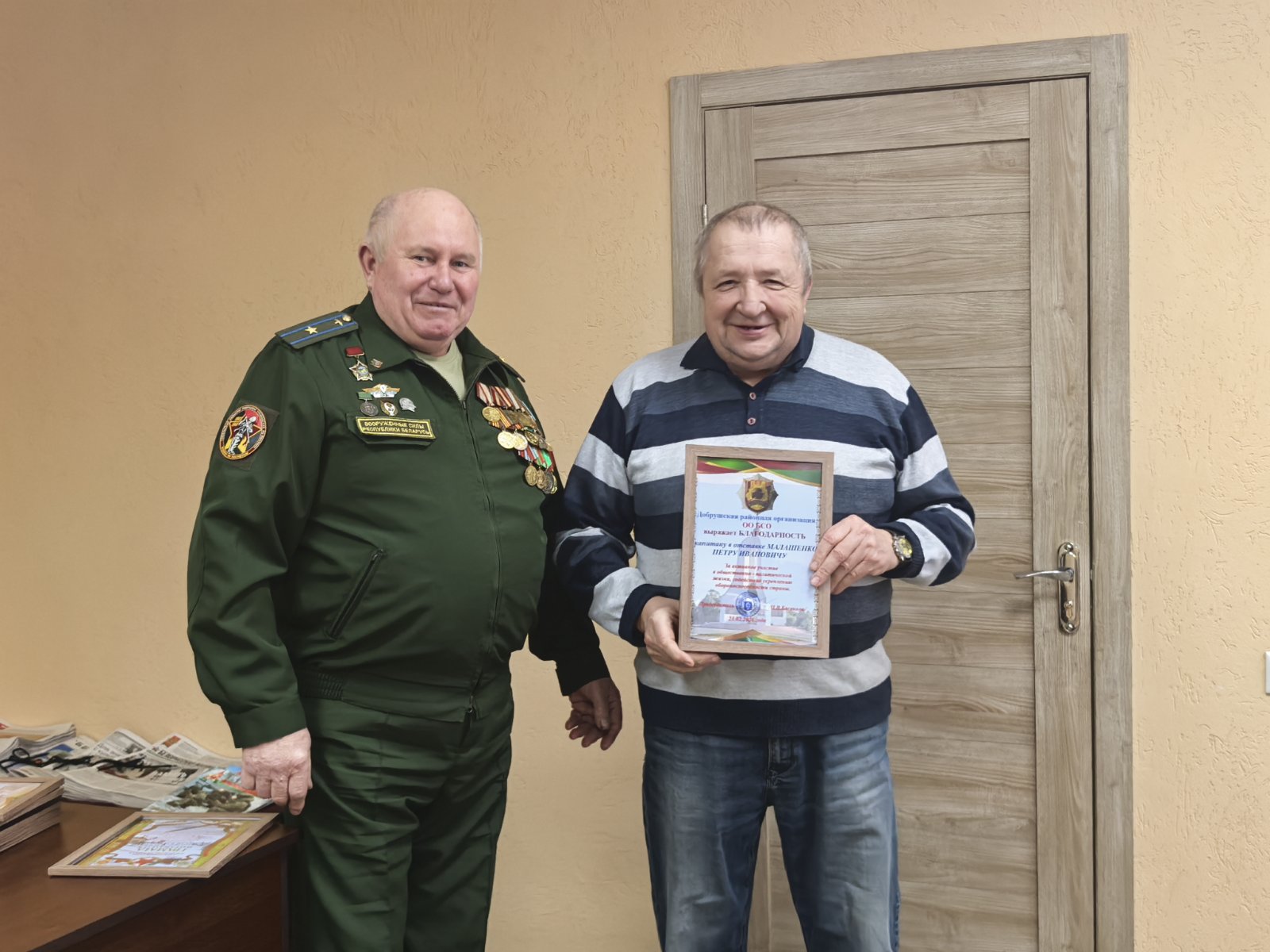 З надыходзячым святам 23 Лютага ўдзельнікаў сходу павіншаваў ваенны камісар Добрушскага і Веткаўскага раёнаў падпалкоўнік Антон Лаўрэнцьеў і ўручыў ганаровую грамату Мікалаю Басянкову. Кіраўнік добрушскага саюза афіцэраў, у сваю чаргу, выказаў землякам шчырыя словы падзякі за ўклад ў развіццё арганізацыі і павышэнне прэстыжу воінскай службы. Прыемным момантам сустрэчы стала ўзнагароджванне яе ўдзельнікаў граматамі і падзякамі раённай араганізацыі Беларускага саюза афіцэраў.