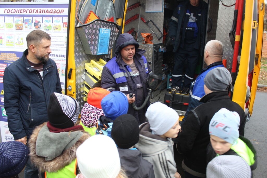 С не меньшим интересом школьники отнеслись к тому, что им рассказывали работники района газоснабжения и просили показать, что находится в машине аварийной службы. А самые смелые решились примерить противогаз.