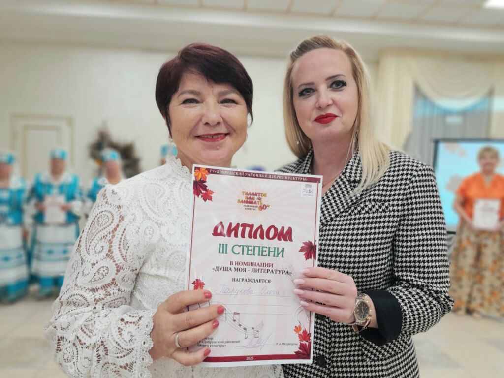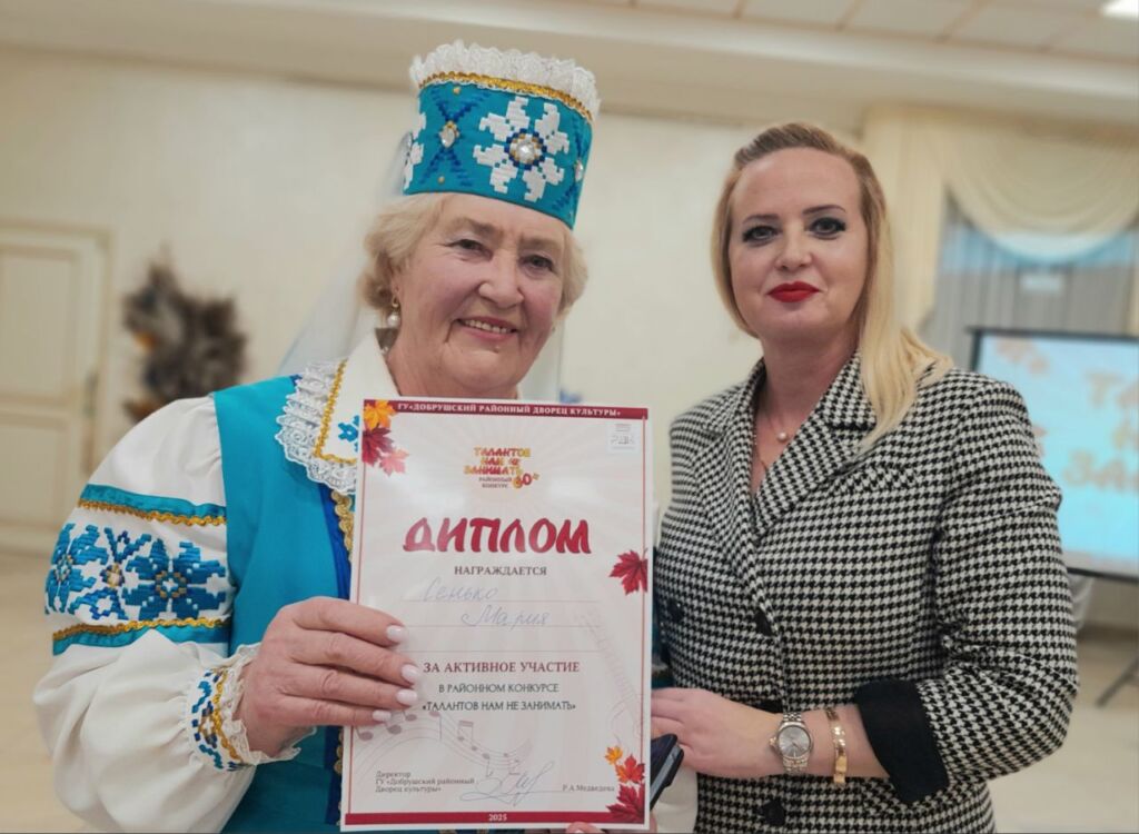 Оказалось, Ольга Парукова — личность разносторонняя. Она любит художественное слово, мастерски читает басни, а ещё хорошо поёт. Кстати, некоторые участники конкурса также продемонстрировали свои таланты в нескольких номинациях. Звонкие голоса, харизма, сценический костюм и продуманный образ…. Ну чем не «Фактор. бай 60+» по-добрушски!