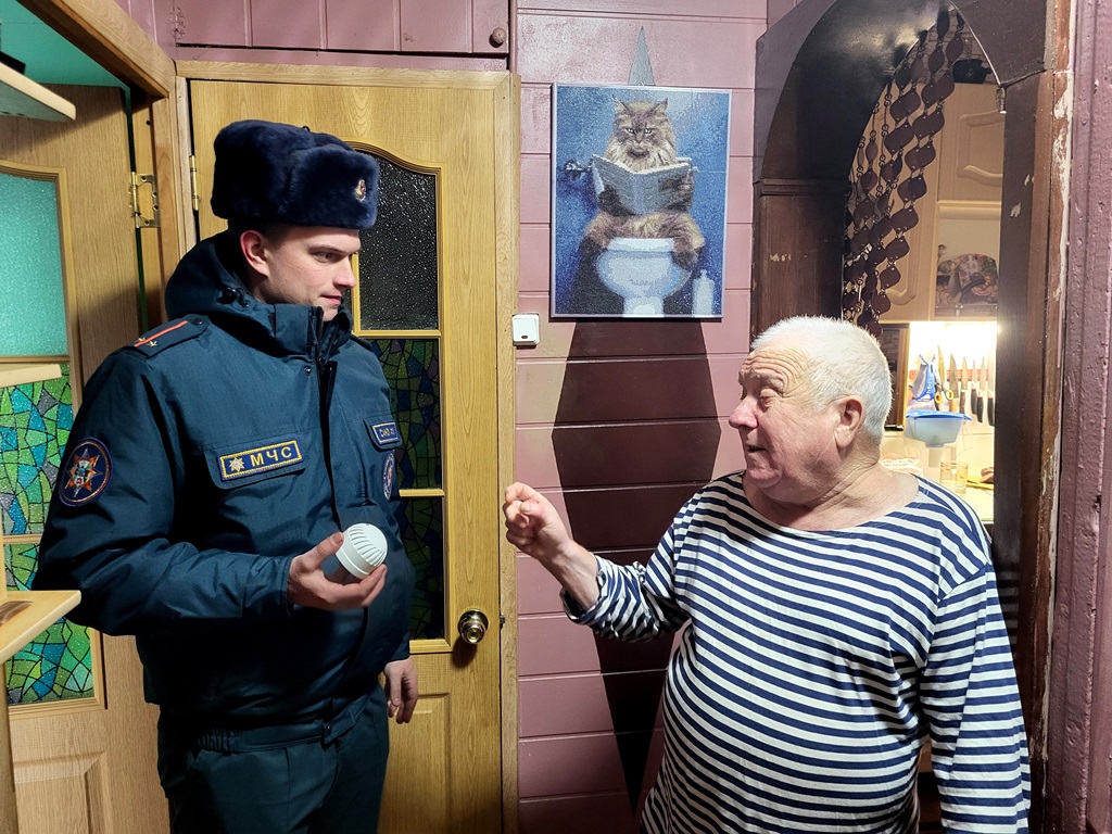 Затем работники МЧС отправились в домовладения одиноких и одиноко проживающих пенсионеров, чтобы проверить условия их безопасности на месте. Во время визитов они уделили повышенное внимание состоянию печей, правильности эксплуатации электрических приборов и, конечно, наличию и исправности автономных пожарных извещателей. В ряде случаев извещатели были установлены и исправны, а там, где их не было, спасатели рекомендовали установить приборы.