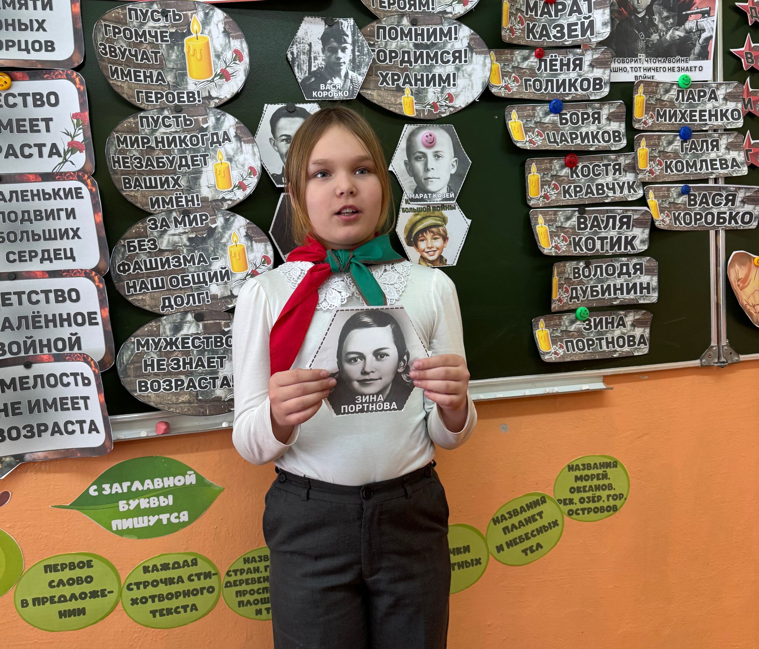 Учащиеся 5-6 классов подготовили трогательные рассказы о подвигах своих сверстников: Зины Портновой, Марата Казея, Вали Котика.